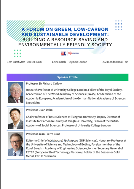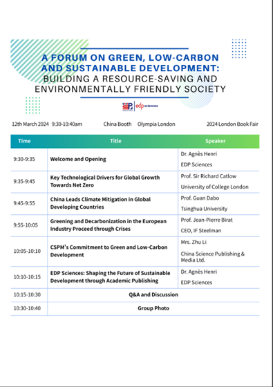 EDP Sciences and CPSM host forum on “Green, Low-carbon and Sustainable Development” at London Book Fair 2024