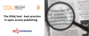 We are pleased to announce that 23 EDP Sciences’ journals have recently been awarded the DOAJ Seal for best practice in open access publishing. Only around 10% of journals indexed in the DOAJ are awarded the DOAJ Seal, so it is a gratifying mark of recognition of the excellent work our journals are doing.