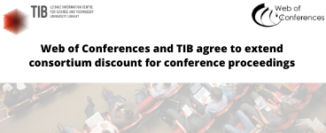 It is with great pleasure that we announce an extension to the agreement between Technische Informationsbibliothek (TIB) German National Library of Science and Technology and Web of Conferences, the open access platform from EDP Sciences. The agreement offers a consortium discount of 15 percent for the publication of conference proceedings and has been extended for a further two years until the end of 2022.