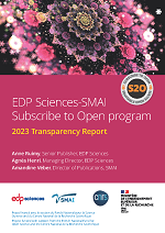 As an advocate of open science, EDP Sciences supports the principle of transparency. We follow FAIR data guidelines to be “as open as possible and as closed as necessary” to decide which information to include. More information is available to interested libraries on request. We hope that releasing supporting information of this kind will help librarians to evaluate our journals and reach an informed decision to subscribe to journals transitioning to open access under S2O.